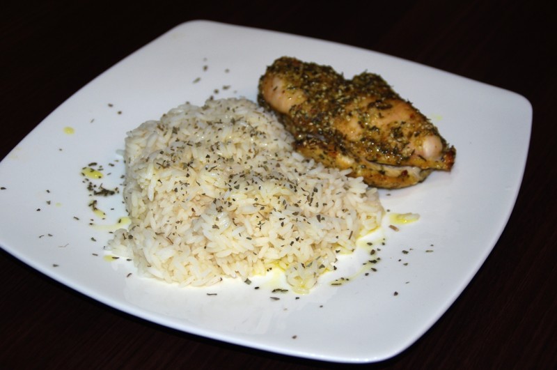 - Ugotowany i odsączony ryż polać 10g oliwy z oliwek.