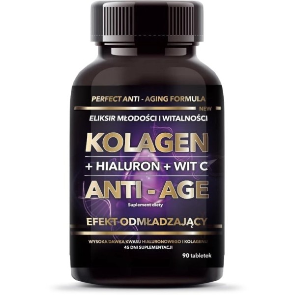 Intenson Kolagen Anti Age 90tab. - jest to wyjątkowo dobrze przemyślany produkt skierowany do osób ceniących skuteczność i brak zbędnych dodatków. Każda porcja to wyjątkowo udane połączenie hydrolizowanego kolagenu, witaminy C oraz kwasu hialuronowego. Wszystko to pozwala na utrzymanie pełnej mobilności oraz sprawności stawów, jak i całego układu ruchu. Trudno o ciekawsze połączenie substancji aktywnych o tak szerokim spektrum działania. Wpływają pozytywnie także na układ immunologiczny, wspierają organizm w walce z wolnymi rodnikami (witamina C). natomiast kwas hialuronowy sprzyja zwiększeniu syntezy mazi stawowej, której niedostatki są niestety nader częste.