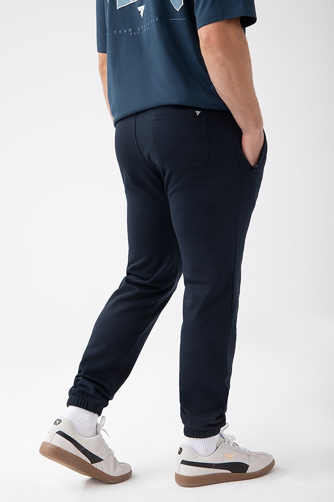 Trec Wear Basic Pants 181 to granatowe męskie spodnie dresowe delikatnie logowane na udzie oraz dole nogawki. Łącząc w sobie wysoką funkcjonalność wraz z panującymi aktualnie trendami w modzie, idealnie dopasowują się do każdego rodzaju sylwetki.